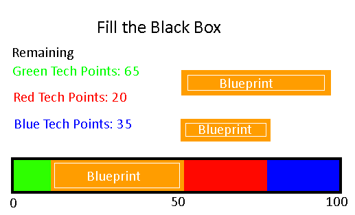 Looking at the image above we can already see a big problem with this system. The Black Box (shown by the horizontal bar at the bottom) has a capacity of 100 and it’s full, but the player still has a lot of tech points and a couple of Blueprints still in the inventory that are going to be lost and that can become frustrating quickly for the player. Player could decide to just suicide after they reached their maximum Black Box capacity as any other rewards would just overflow and this is against the goal of the game. The two ways that I’m considering right now (not final yet) to tackle this problem are Compressing Stations and Post Stations.